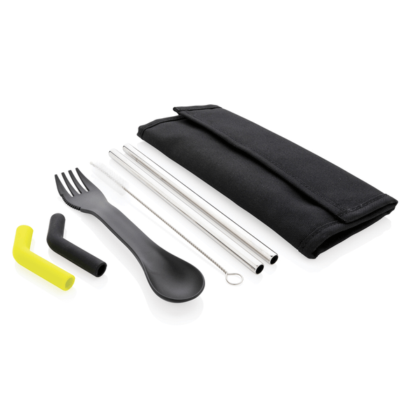 Tierra 2pcs straw and cutlery set in pouch